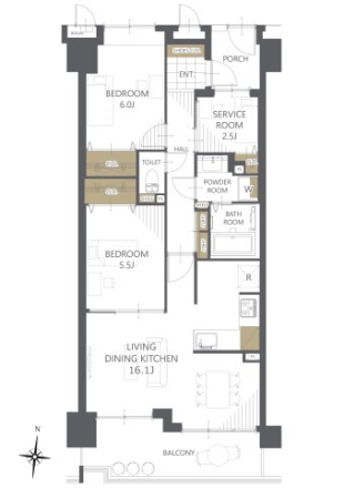 | 構 造 | RC造14階建/4階 | 間取り | 2SLDK |